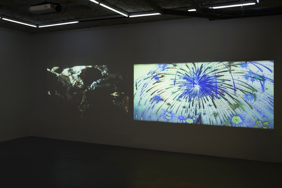Cette nouvelle installation vidéo, d’une durée totale de 5.45 min, est un triptyque où se mélangent des images extraites d’animations de Walt Disney Fantasia, Blanche-Neige, Alice au pays des merveilles, et des images restantes, non employées au montage, des films tournés en 16mm et transférés sur support vidéo Floues et colorées (2010), De l’argent filmé de profil et de trois quarts (2010), Figures (2011). Dans les trois vidéos, les sources d’images hétérogènes sont imbriquées différemment : en succession linéaire, par superposition et incorporation, par soustraction chromatique.