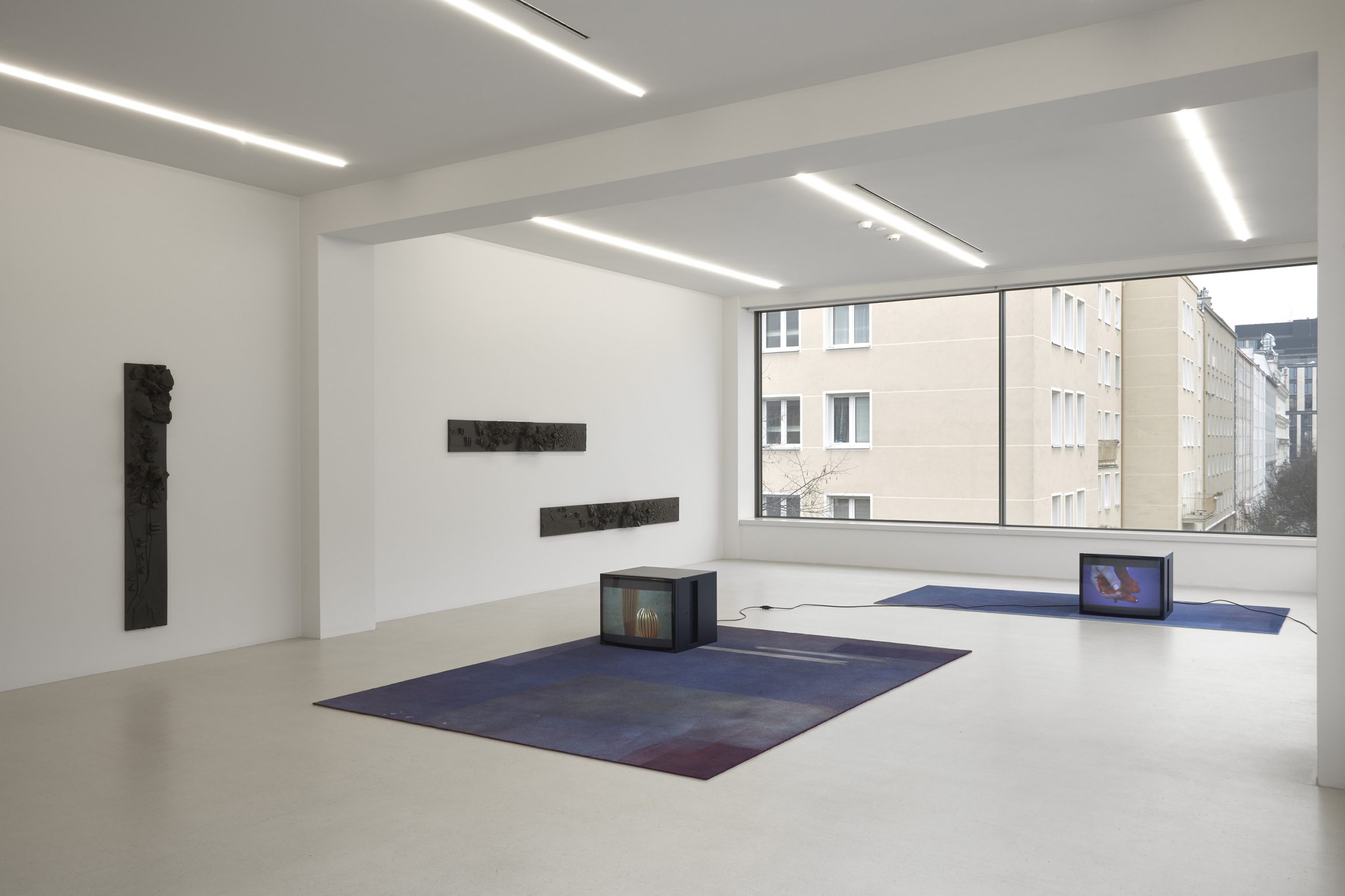 Isabelle Cornaro works with objects; however she seldom shows any. She presents their images instead, their shapes, their shadows—sometimes even more distant echoes of their forms. Or, when she does exhibit a collection of things, then in pigments drips, or bathed in saturated color lights; while her sculptures render paraphernalia in a uniform they stand for something else than themselves: jewels are used to draw a map; carpets, trinkets, and dishes to form a landscape. Their presence is deferred, delayed, or put in brackets, even though it is strongly felt, as the artist carefully emphasizes the materiality as well as the artificiality of the objects she works with. Her films show bits and pieces covered, monochrome substance, making them paradoxically physical and abstract, as if detached from themselves.
