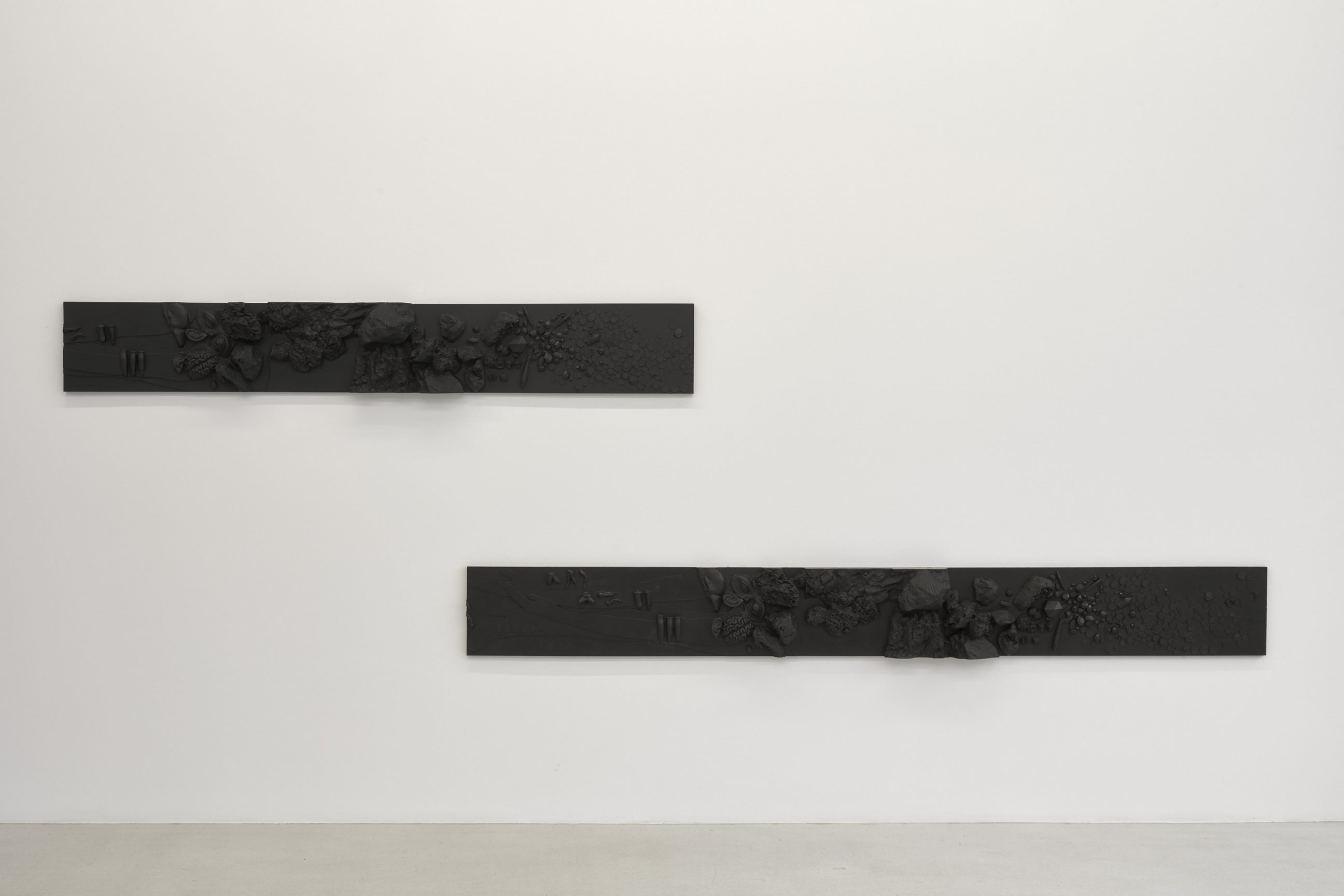 Isabelle Cornaro I agree with your description of Baroque as having a quality of vibration and expansion, as opposed to the silent aspect of my work. The objects are muted by being fixed as an image in a material that makes them more generic—they are the image of a face, a stone, a snake and so on — and by possessing the same consistency they seem to belong to the same kingdom and era once they are cast. It is also true that there is a funerary aspect to them as signaled in the title of the show at LA><ART—This Morbid Round Trip from Subject to Object, quoted from a previous interview with Quinn Latimer. Reflecting on our tendency to anthropomorphize objects and qualify them with feelings, whether it is due to memories and emotional value, or to hard work and financial value, I understood this movement as an extension of our own physical experience of objectification and death: namely, the transition from being a subject / animated person, to being an object / inanimate corpse. In my works, I connect this with my interest in the transition from shapelessness to formal properties and with an appreciation for chance and combinatorial processes.