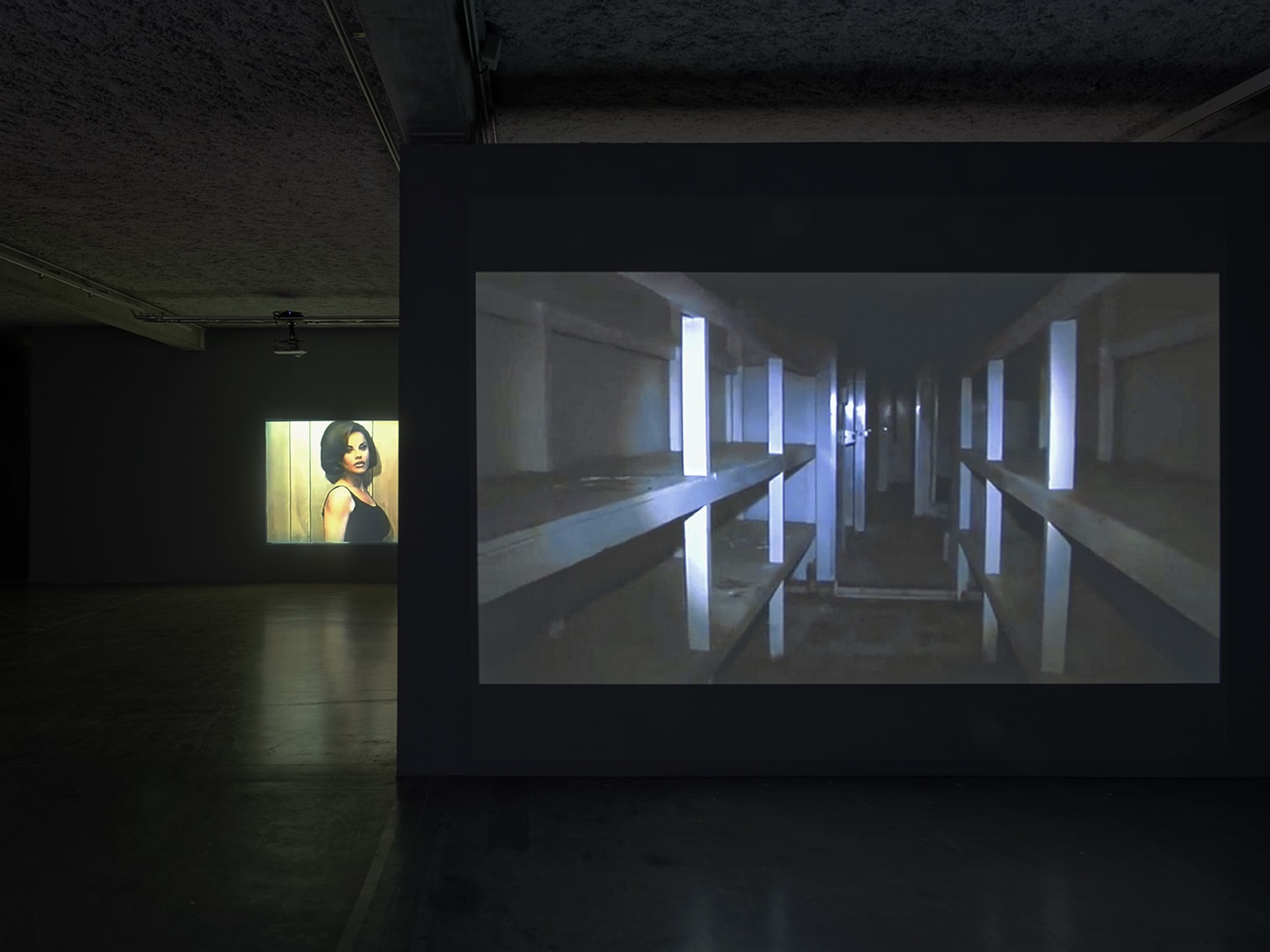 On this same floor, Isabelle Cornaro presents a dialogue between her own films and a selection of film excerpts found on the internet: popular science films, commercials or gore movies from the 1960’s. These films share a common origin — a mainstream entertainment culture that transforms objects into fetishes, using a gestural language and framing that are voluntarily excessive. Something almost unhealthy emerges from this obsessive relationship with objects; something close to abhorrent, which is linked to the decomposition and the objectification of the subject. As in Cornaro’s own films, the cinematic grammar is very simple here: long fixed or simple panoramic shots, made vibrant through expressionist light effects, bringing to light the obsessive and even concupiscent nature of our scrutiny.