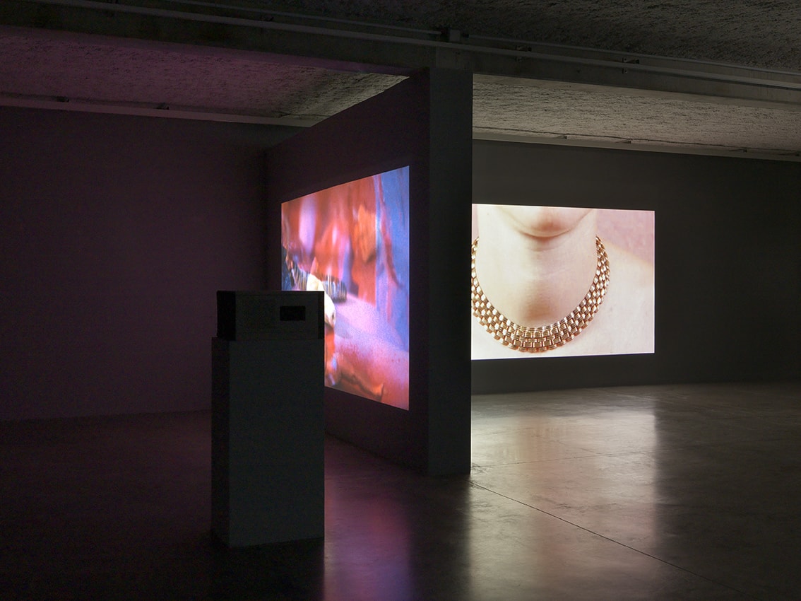 Her work is based on a mastery of collage which uses images and objects stemming from both scholarly and popular cultures. The artist explores the way in which these images and objects, always historically and culturally defined, influence our perception of the world. The Chinese vases, vintage jewels and Persian carpets that the artist gleans from flea markets, all refer to a popular culture that makes use of the iconography of luxury to produce objects that are accessible to everyone. These objects embody a potential which is as emotional as it is symbolic: they are extensions of ourselves, but also products of a Western capitalist domination over the rest of the world. Once collected, these objects are then arranged by the artist to serve as the foundation of an artistic process that expresses itself through film as well as painting and sculpture.