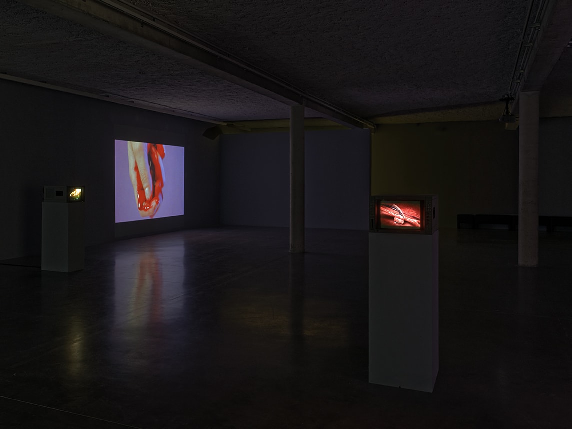 Between abstraction and portrayal, moving images and freeze-frames, Blue Spill presents us with a immersion into a singular universe, where the border between object and subject is constantly being reconfigured, where eroticism mingles with gore, seduction borders on repulsion, and formalism mixes with emotions.