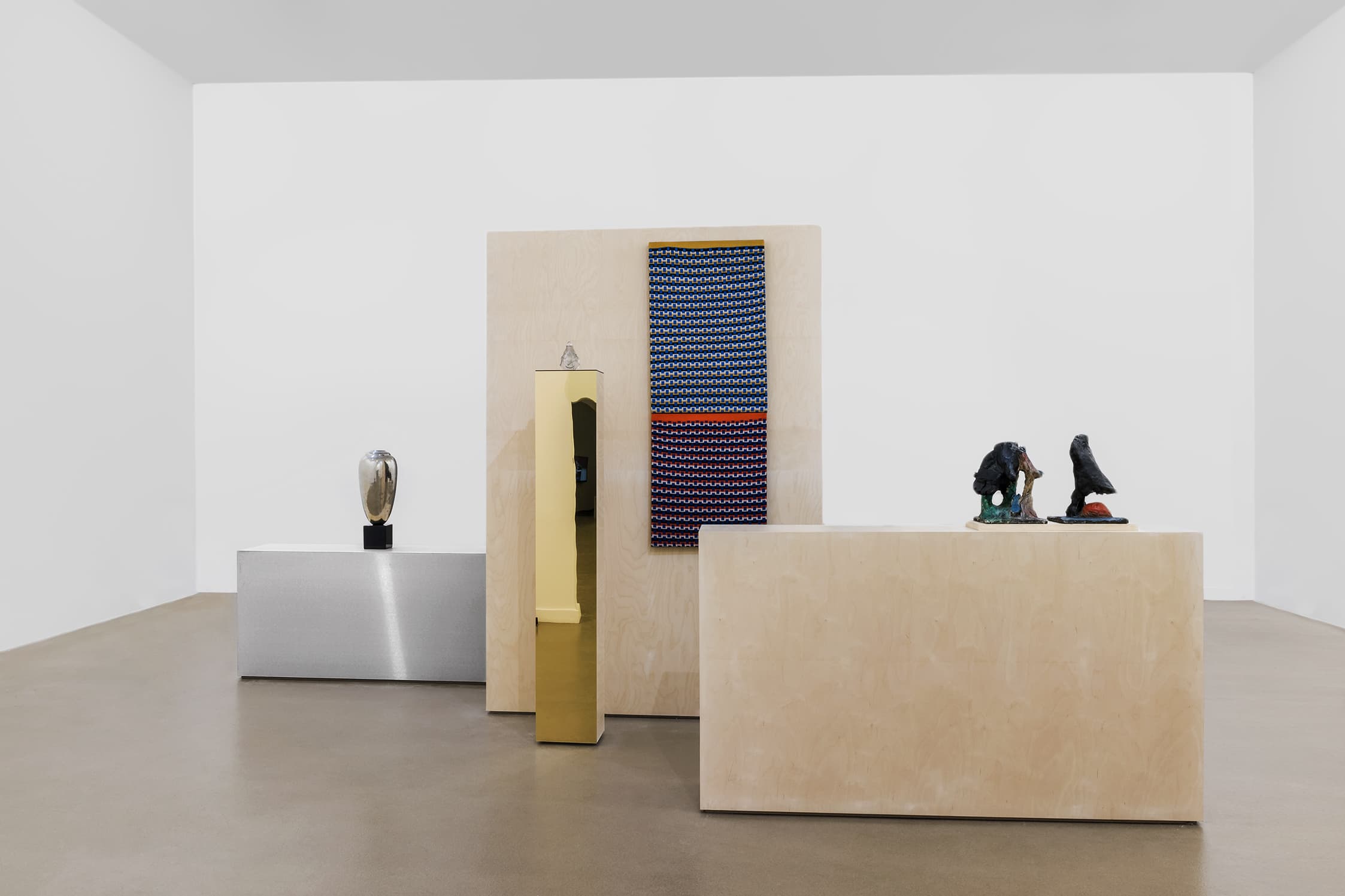 IC: Les Paysages avec Poussin et témoins oculaires sont des installations frontales composées de socles et de cimaises placées en perspective, sur lesquels sont disposés des objets variés. Les objets sont trouvés, ils proviennent de sources diverses, et sont mis en regard pour créer une narration sur la collection, le fétichisme, la valeur d’échange etc… Ici, les modules socle-cimaise composent également un dispositif pour présenter les objets issus des collections du Musée d’Art moderne de la Ville de Paris, mais suivent une organisation plus ramassée et qui n’inclut pas vraiment de système perspectif – et encore moins de lecture frontale puisque l’on peut tourner autour de l’installation.
