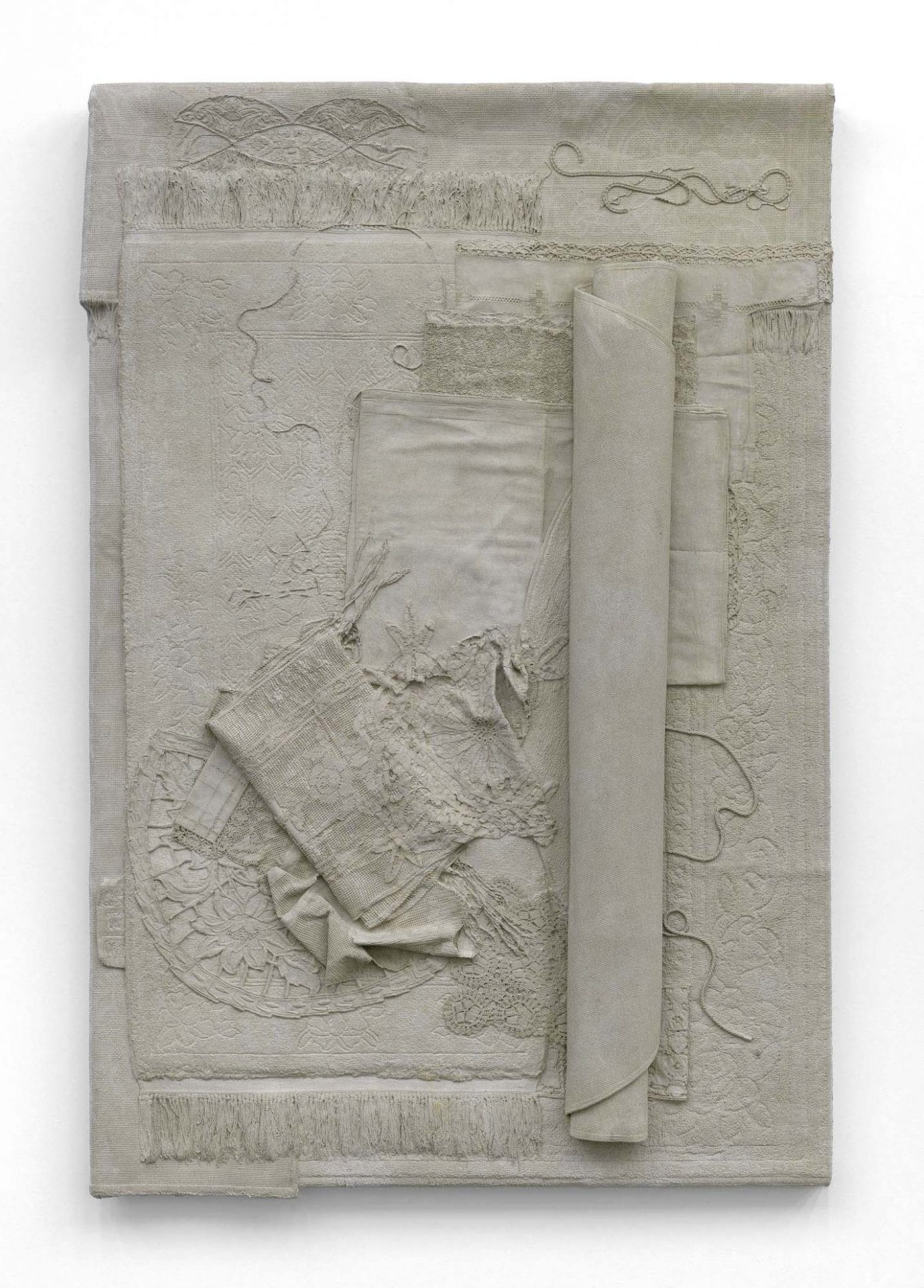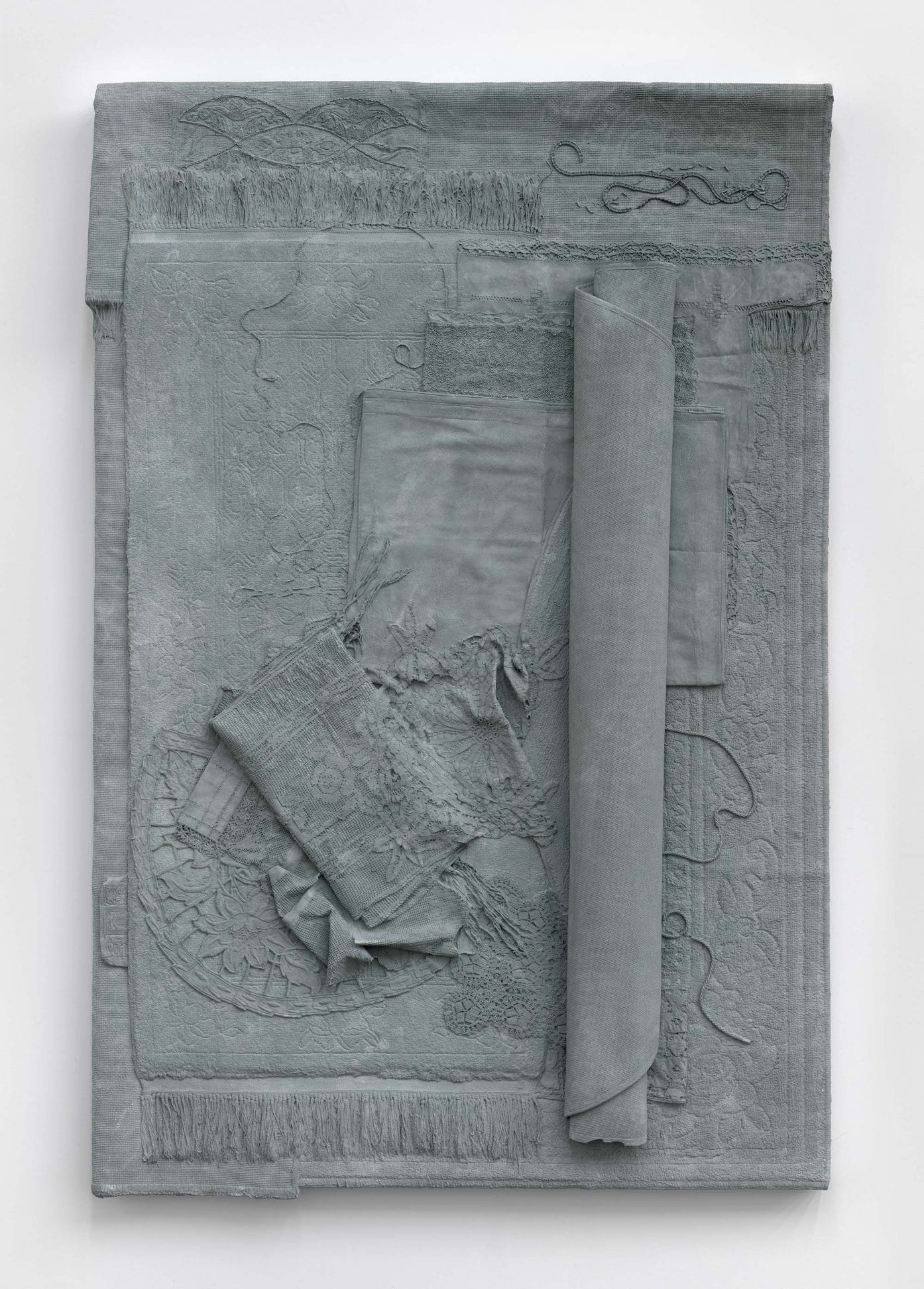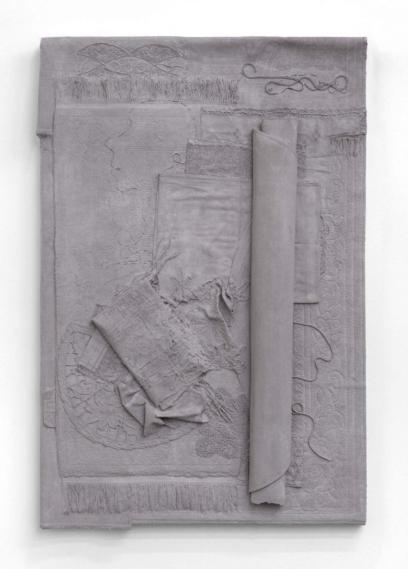 Through meticulous arrangements, she investigates the properties of objects and the historicity they can point to or steer away from. Homonyms (II) (2012), for example, are coloured plaster casts taken from soft materials such as laces, quilts and carpets. The misplaced use of colour and materiality of their new form alters their original identity and disrupts how these transformed objects are perceived. In the film, Money filmed from the side and a three-quarter view (2010), Cornraro portrays actual coins and Euro notes being transformed into abstract forms through the cinematic use of light and colour. The preoccupation with spatiality and light in the film brings currency’s aesthetic into the composition, stripping the importance of its monetary value. Cornaro creates differing landscapes in her work, welcoming new reflections on the ideology of object and space.